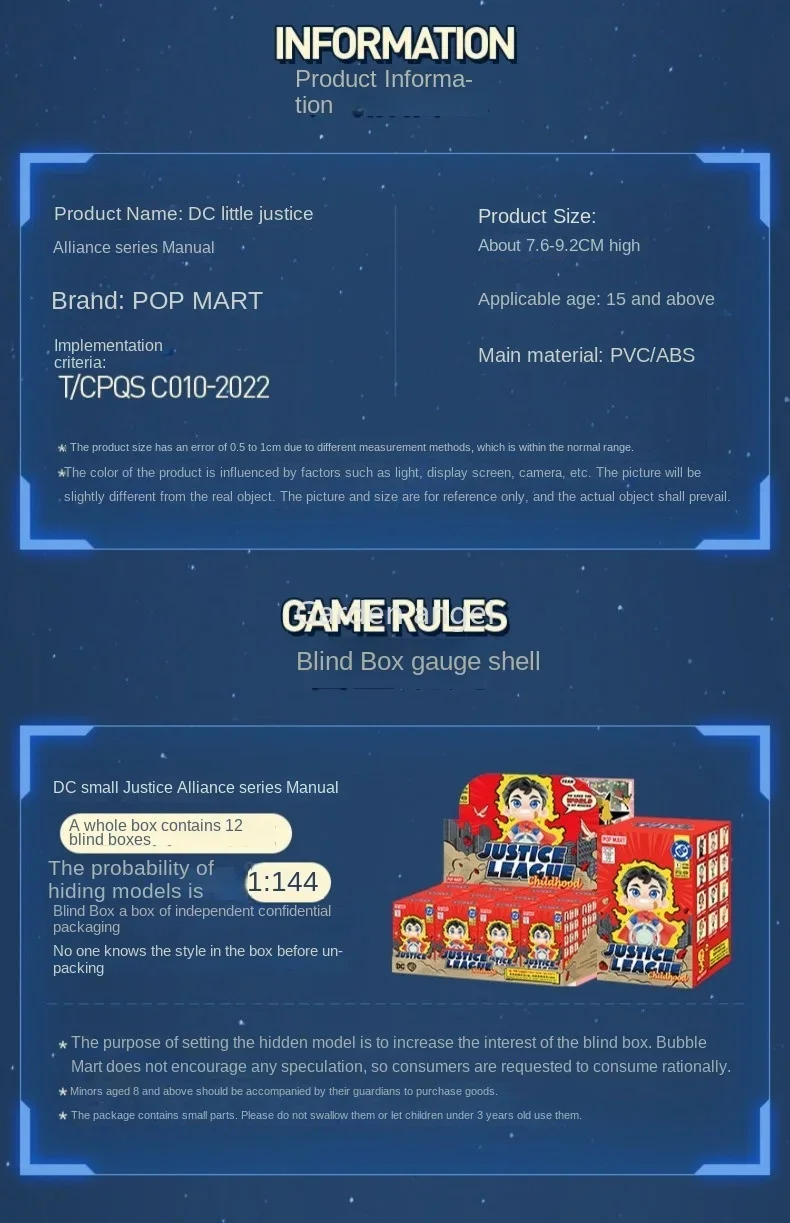 Colecione figuras surpresa Pop Mart da DC com design detalhado e acabamento premium. Personagens icônicos como Superman e Flash em miniaturas perfeitas para fãs e colecionadores.